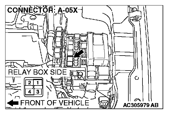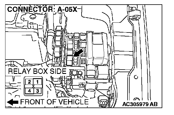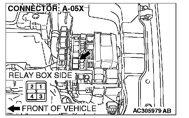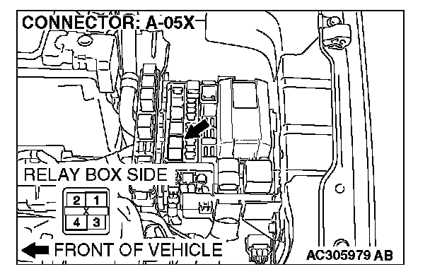 STEP 6. Check fog light relay connector A-05X for loose, corroded or damaged terminals, or terminals pushed back in the connector.