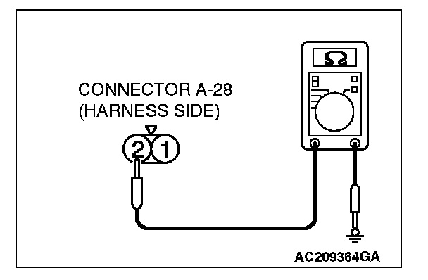 2. Measure the resistance value between terminal 2 and ground.