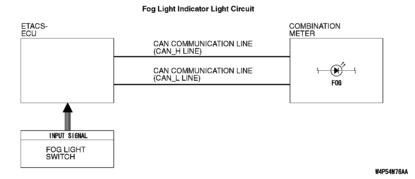 At the same time that the fog lights are illuminated, the ETACS-ECU sends a signal to illuminate the fog light indicator via the CAN bus line.
