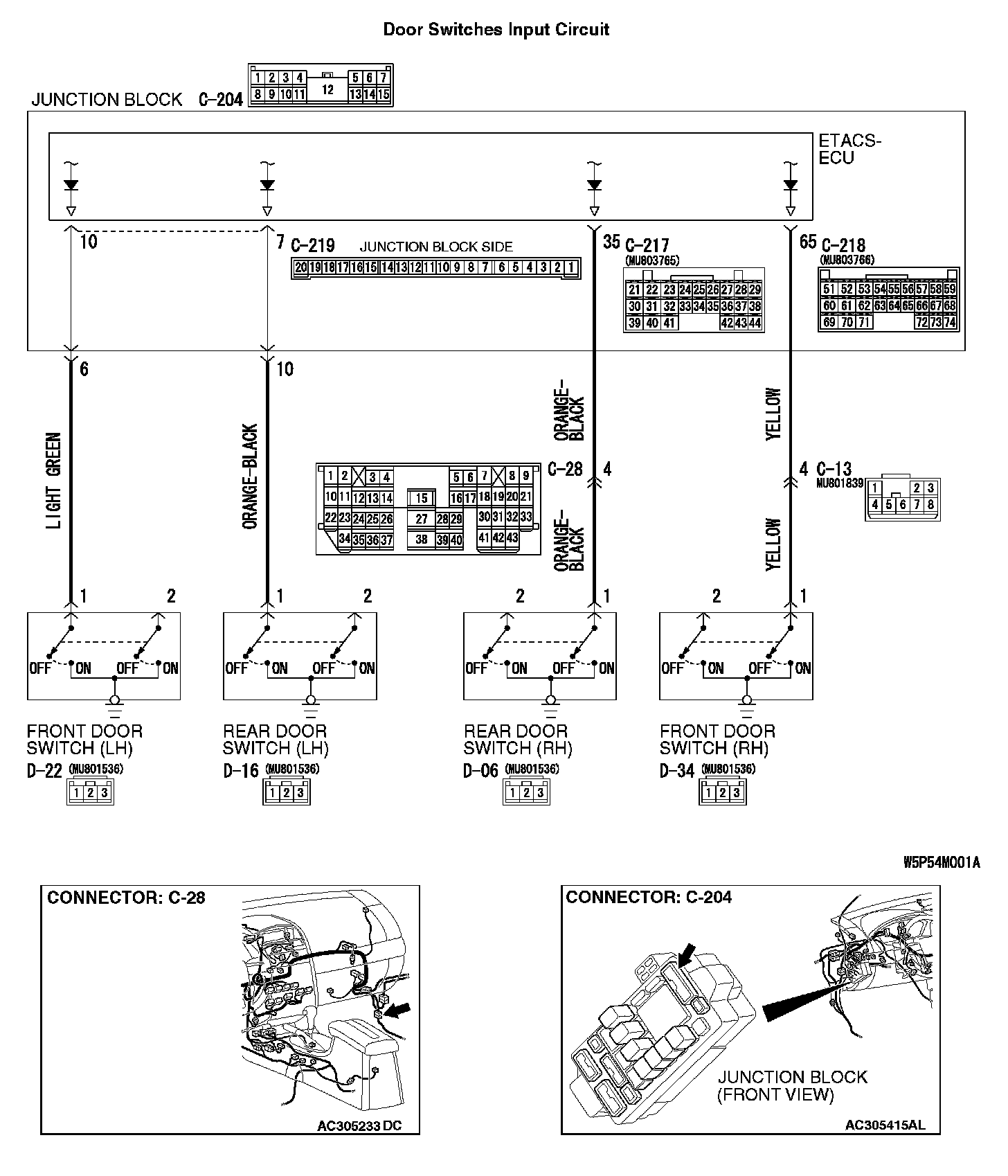 If the signal is not normal, the functions or systems described in "CIRCUIT OPERATION" do not work normally. If the signal is not normal, the front or rear door switches or the ETACS-ECU may be defective.
