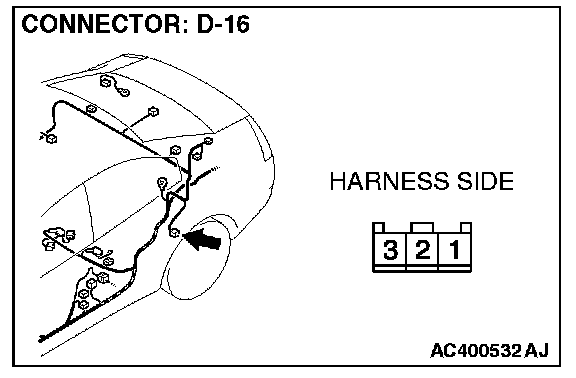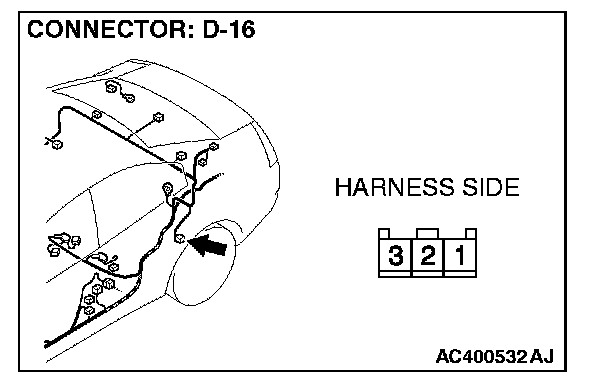 STEP 2. Check rear door switch (LH) connector D-16 for loose, corroded or damaged terminals, or terminals pushed back in the connector.