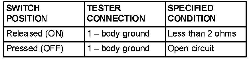 Remove the rear door switch (LH). Refer to Door, Door Assembly. Then check continuity between the switch terminals and the body ground.