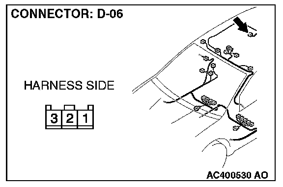 STEP 7. Check rear door switch (RH) connector D-06 for loose, corroded or damaged terminals, or terminals pushed back in the connector.