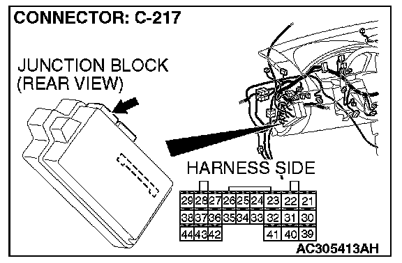 STEP 10. Check ETACS-ECU connector C-217 for loose, corroded or damaged terminals, or terminals pushed back in the connector.