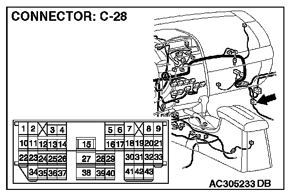 NOTE: Also check intermediate connector C-28 for loose, corroded, or damaged terminals, or terminals pushed back in the connector. If intermediate connector C-28 is damaged, repair or replace the damaged component(s) as described in Harness Connector Inspection.
