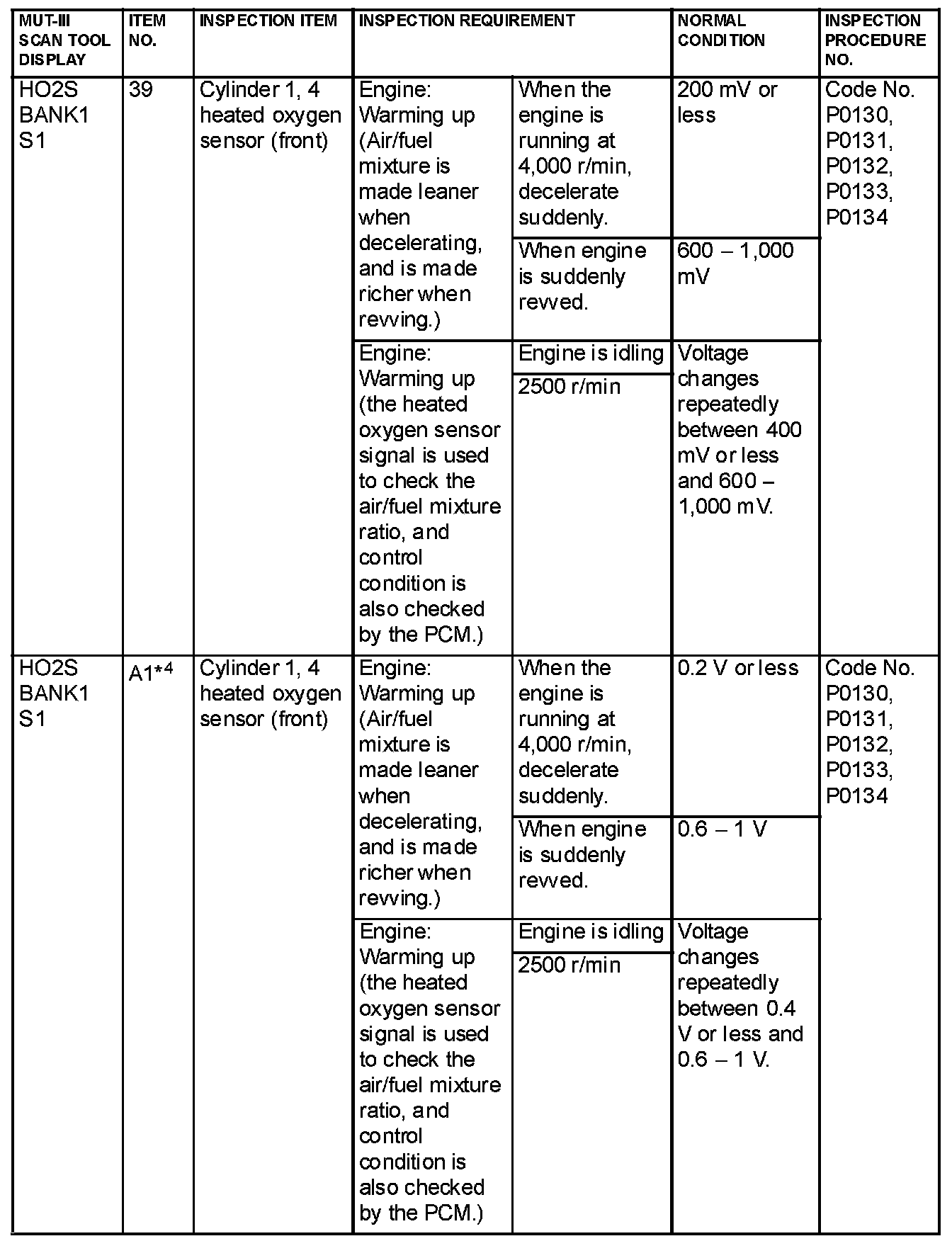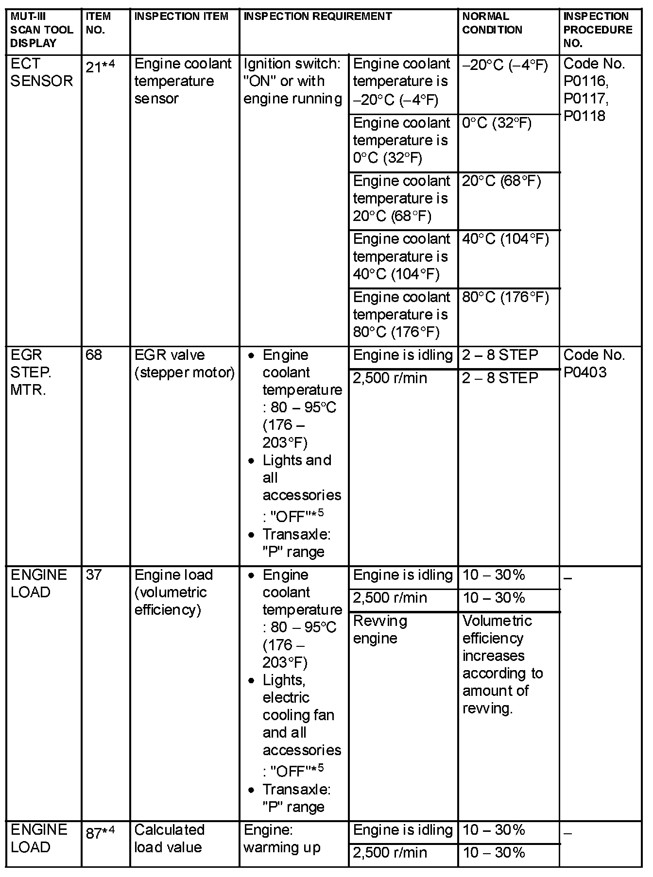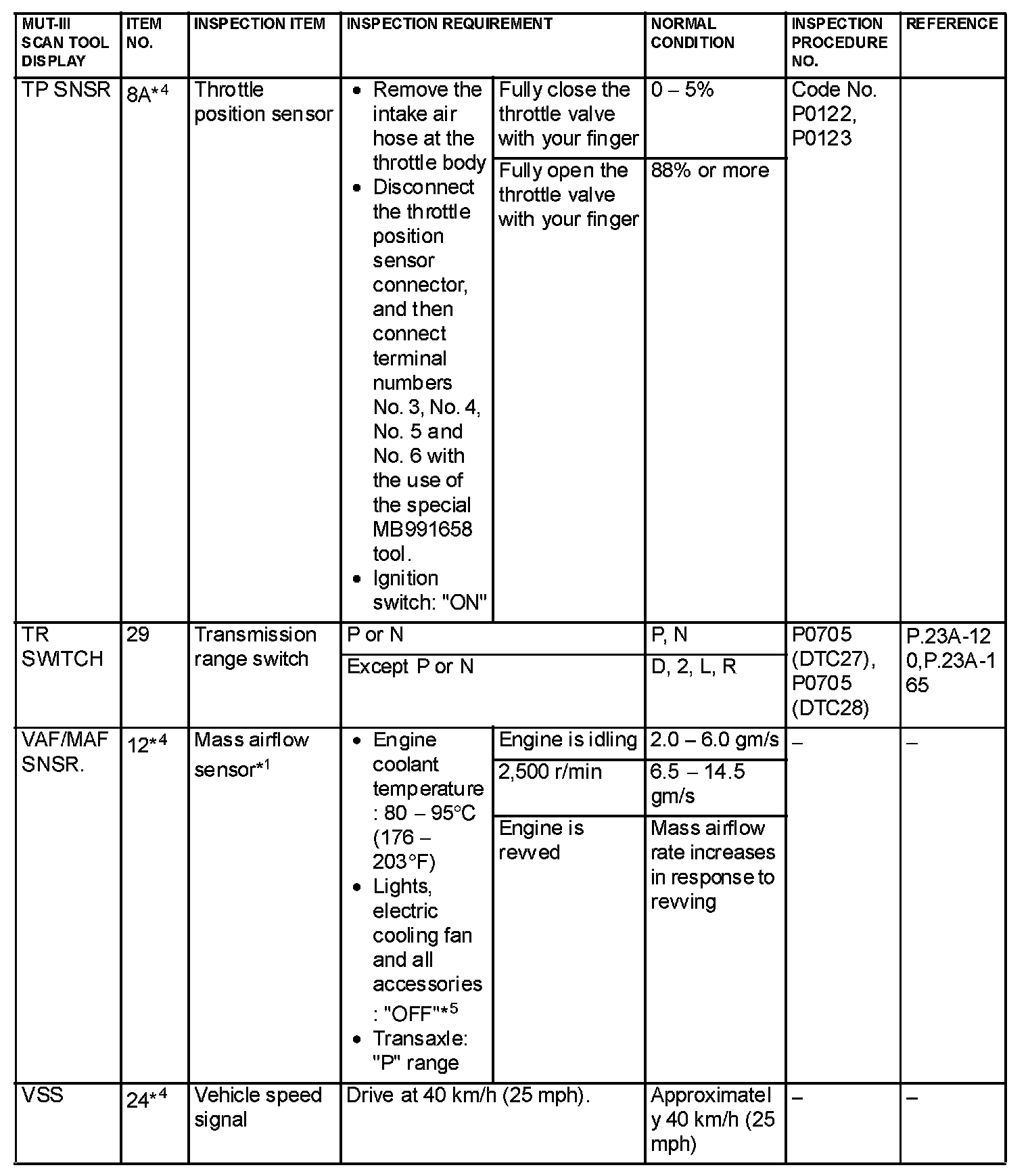 NOTE: *1: In a new vehicle [driven approximately 500 km (311 mile) or less], the mass airflow sensor output value is sometimes 10% higher than the standard value.