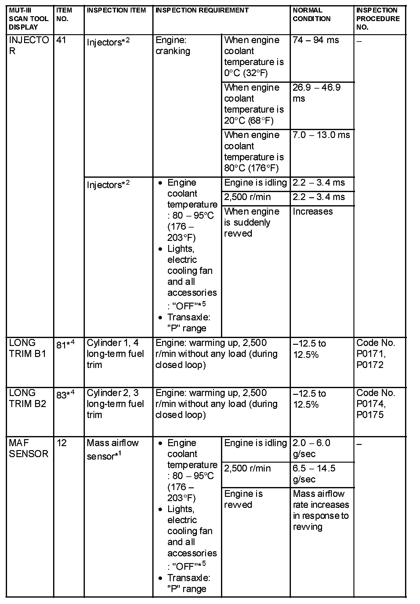 NOTE: *3: In a new vehicle [driven approximately 500 km (311 mile) or less], the injector drive time is sometimes 10% longer than the standard time.