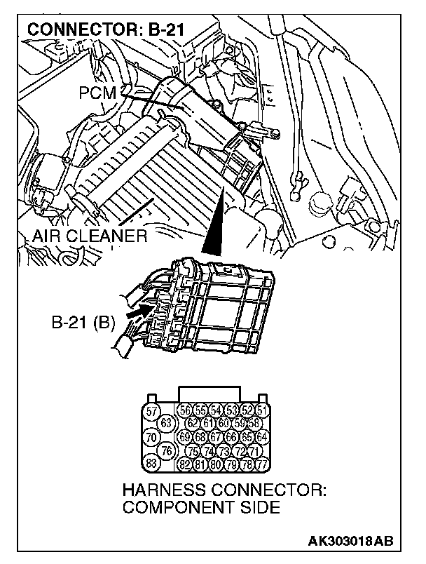 STEP 1. Check harness connector B-21 at PCM for damage.