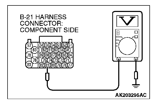 1. Disconnect the connectors B-21 and measure at the harness side.