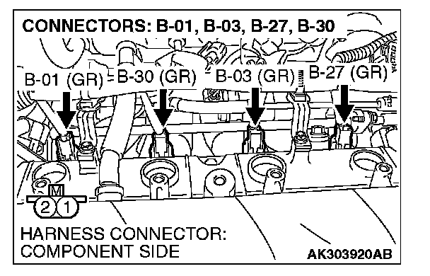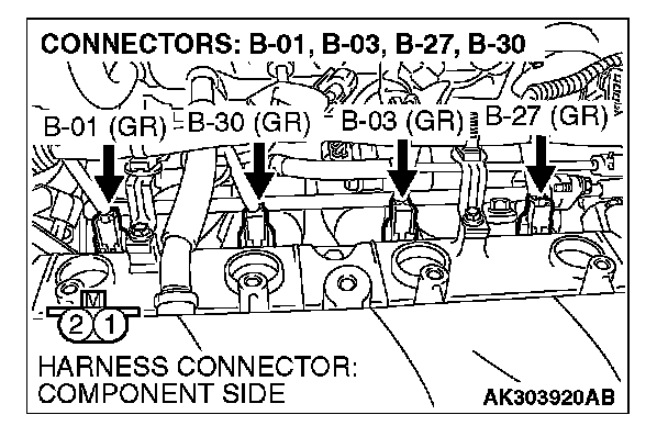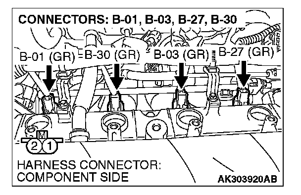 1. Disconnect the injector connector B-01, B-03, B-27 and B-30.