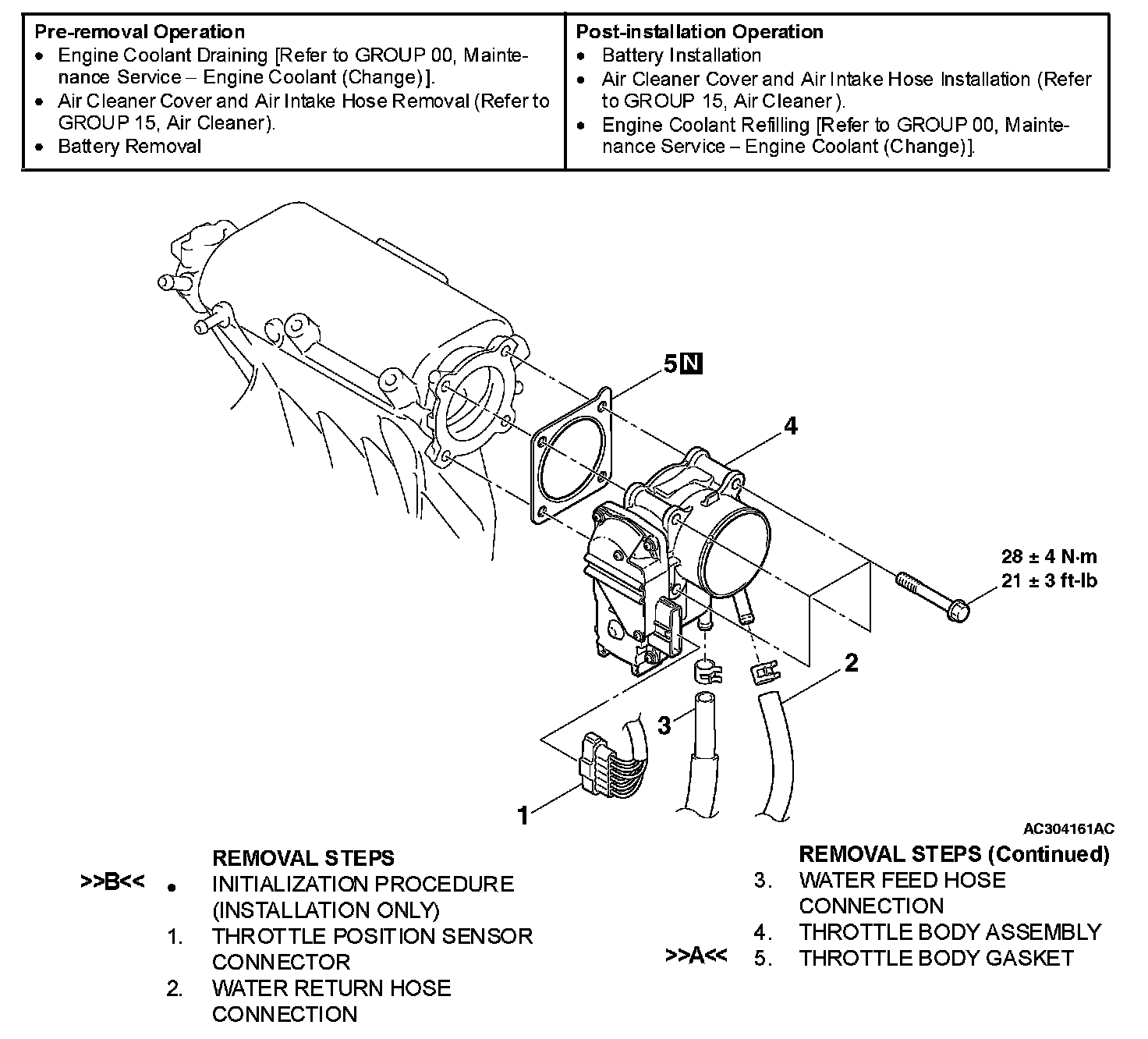 THROTTLE BODY ASSEMBLYREMOVAL AND INSTALLATION