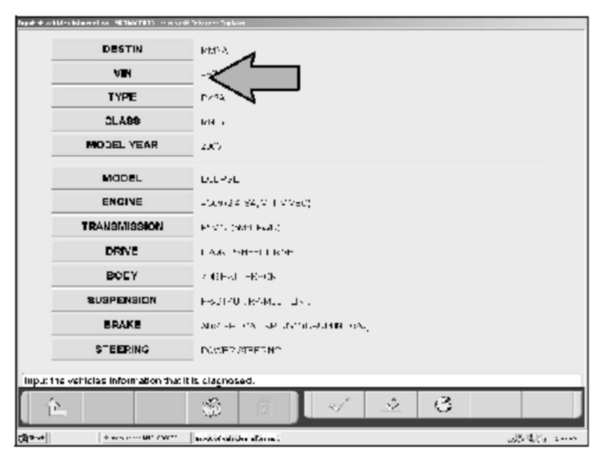 NOTE: The VIN should have already been input into the MUT-III in Step 2. Using an incorrect VIN will cause a reprogramming data search error.