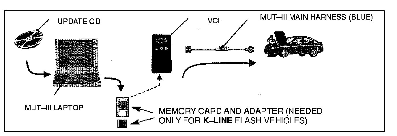 7.Install Reflash Update CD 10/05 in the MUT-III laptop. Follow the CD installation instructions.
