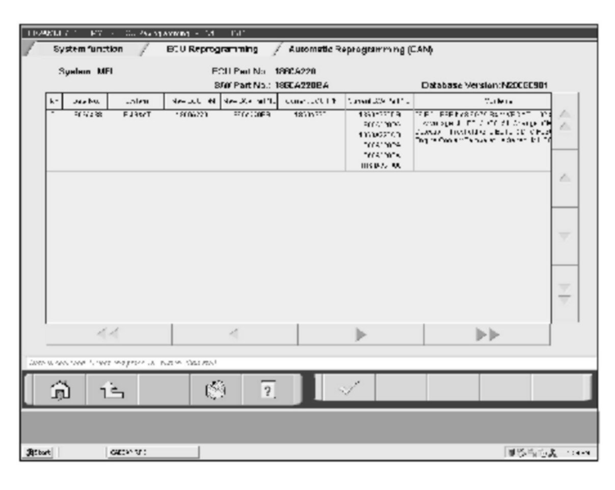 d.The CAN database screen will display, if the appropriate flash data is found. (If more than one row is displayed in the table, select the appropriate ECU part number.) Click on the check mark. It will take up to 10 minutes to complete the reprogramming.
