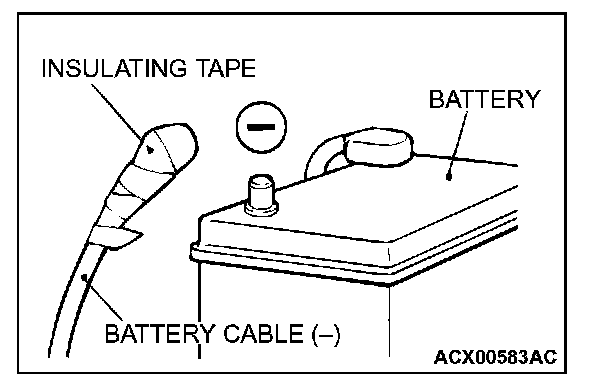Disconnect the negative (-) battery cable from the battery and tape the terminal to prevent accidental connection and air bag(s) deployment.