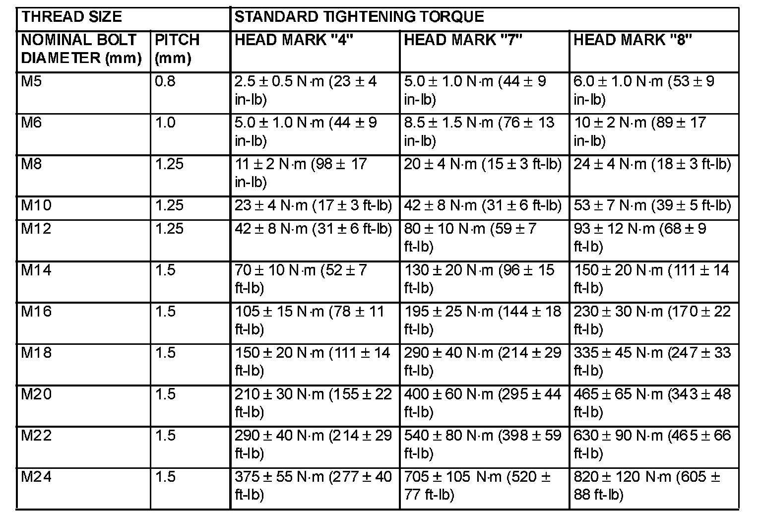 TIGHTENING TORQUEEach torque value in the table is a standard value for tightening under the following conditions.