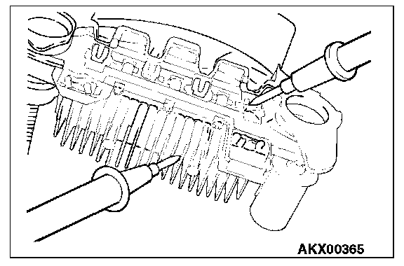 3. Check the continuity of the three diodes by connecting an ohmmeter to both ends of each diode. If there is continuity between the directions, or if there is no continuity, the diode is damaged, so replace the rectifier.