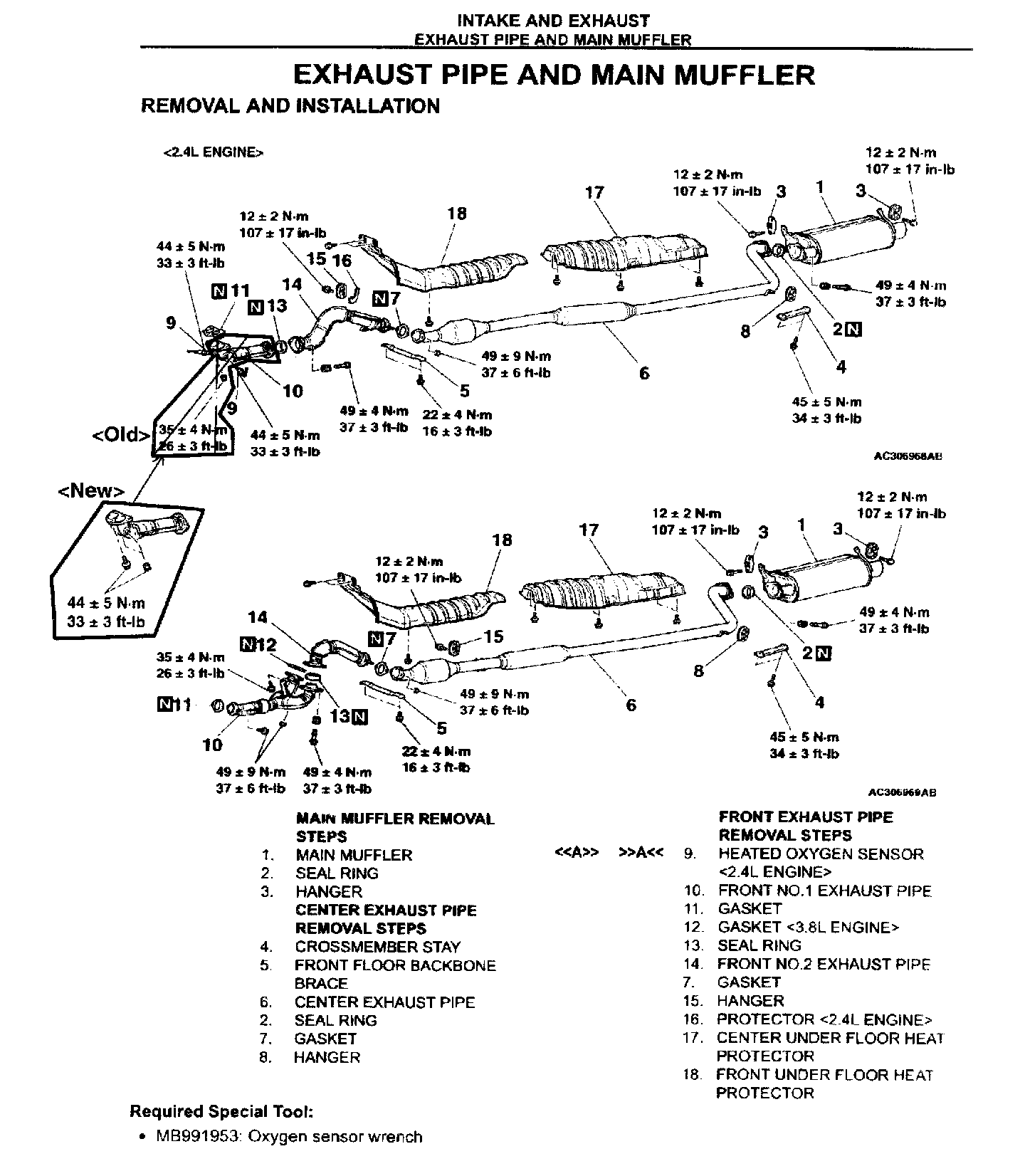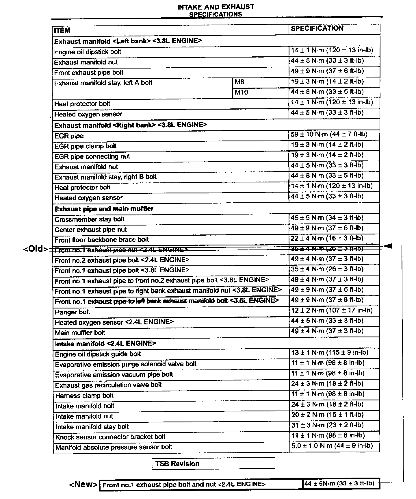 The torque specification for the front exhaust pipe on 2.4L engine models has been changed. This bulletin contains the new torque specification.