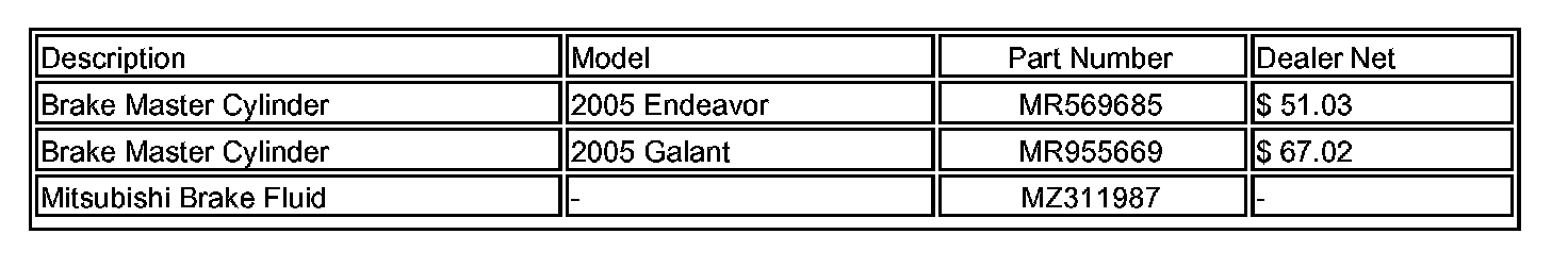 Specific 2005 Galants and Endeavors with ABS Brakes Brake Master Cylinder Replacement