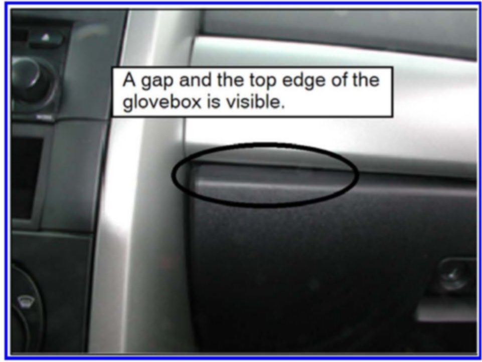 Some affected vehicles may have a gap at the upper left corner of the glove box and the dash.