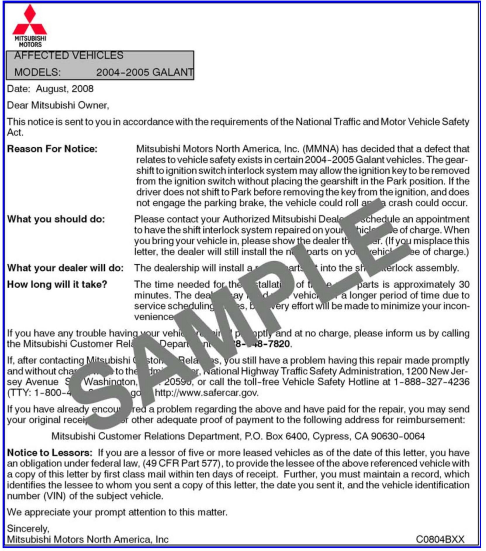 Recall - A/T Shift Interlock Modification