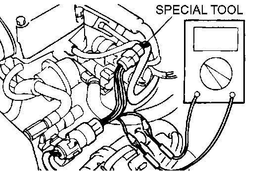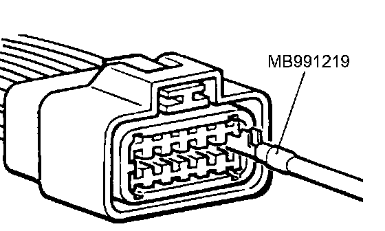 ^ The special tool MB991219 for connector pin contact pressure should be used. The test probe should never be forcibly inserted, as it may cause a defective contact.
