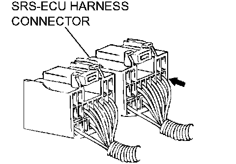 ^ Since the SRS-ECU harness connector is plated to improve conductivity, observe the warning below when checking this connector.