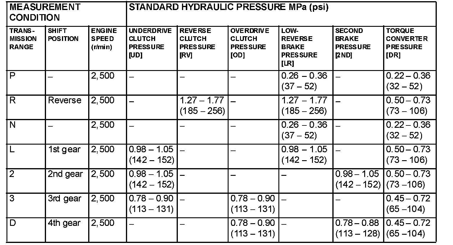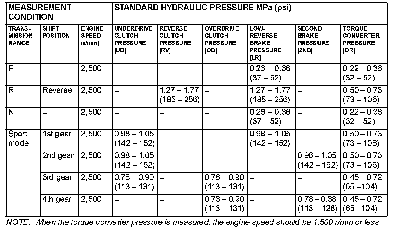 ^ Transmission fluid temperature: 70 - 80°C (158 - 176°F)