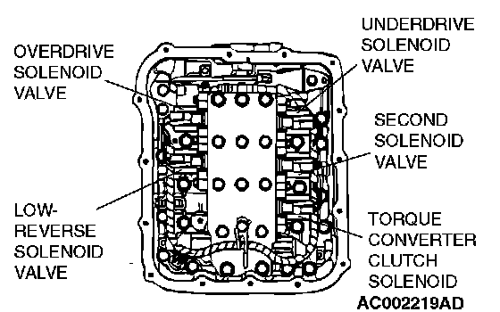 10. If the resistance is within the specified range, check the wiring harness between the affected A/T control solenoid valve assembly and the solenoid valve. If a problem is not found in the above steps, check the solenoid valve O-rings and replace them if necessary.
