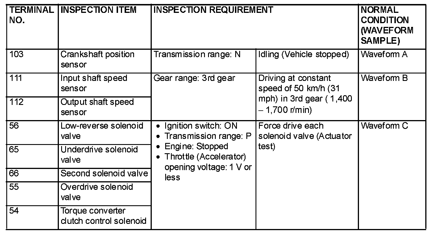 INSPECTION PROCEDURE USING AN OSCILLOSCOPE