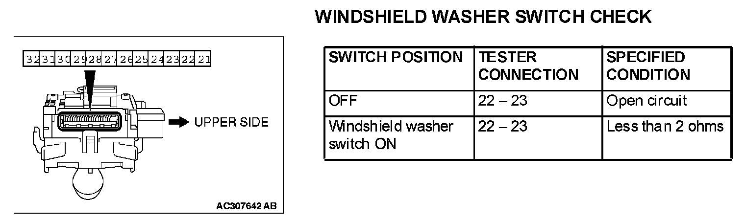 Windshield Washer Switch: Testing and Inspection