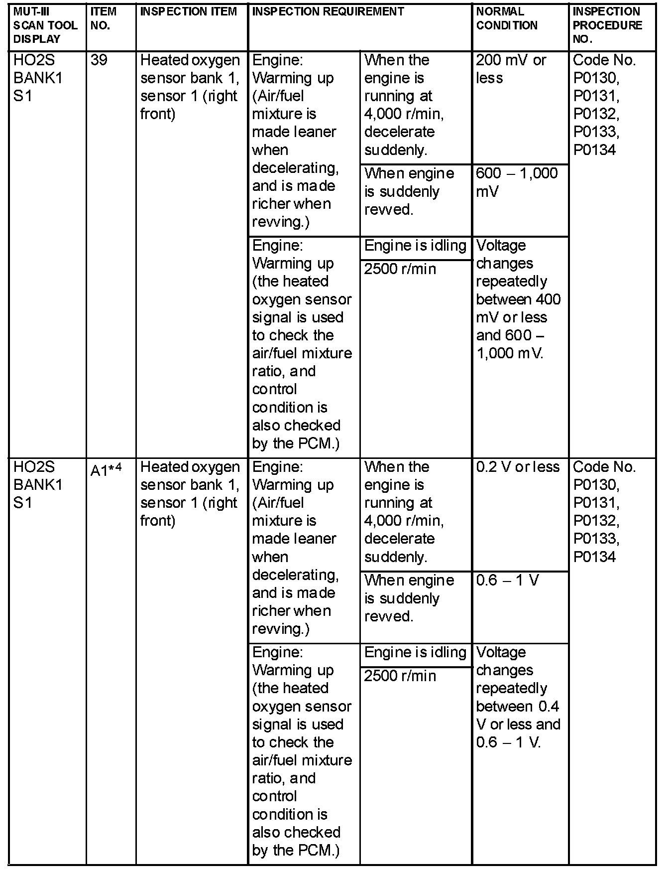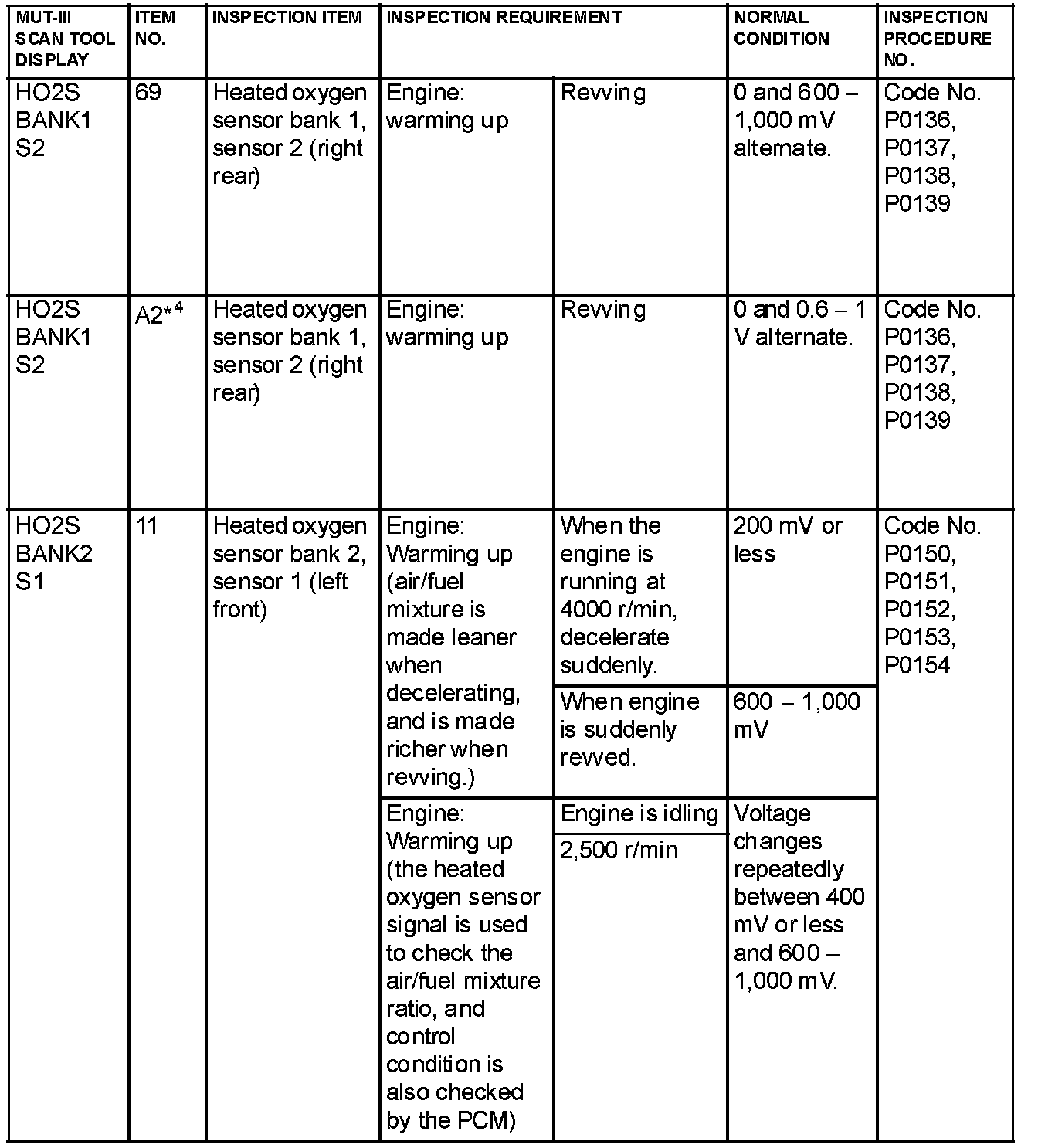 NOTE: Sensor 1 indicates the sensor mounted at a position closest to the engine, and sensor 2 indicates the sensor mounted at the position second close to the engine.