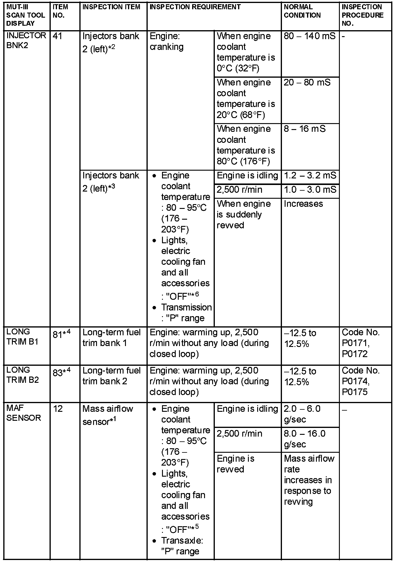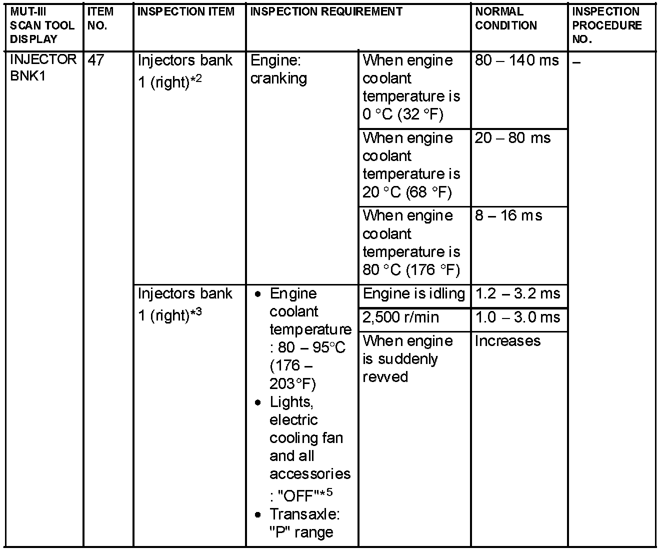 NOTE: *3: In a new vehicle [driven approximately 500 km (311 mile) or less], the injector drive time is sometimes 10% longer than the standard time.