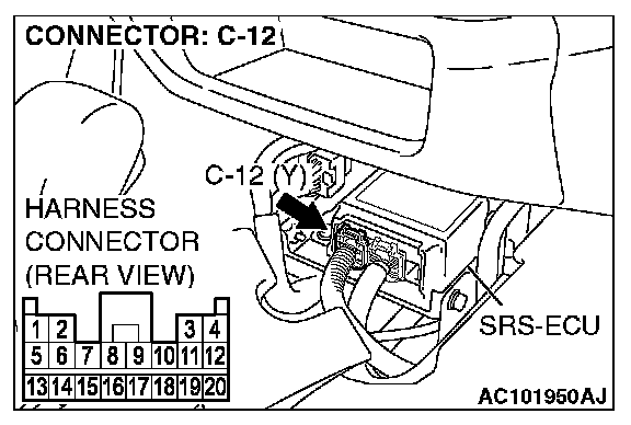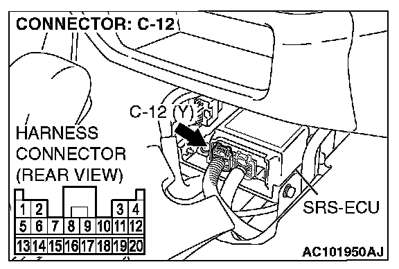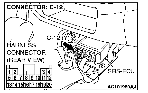 1. Disconnect SRS-ECU connector C-12.