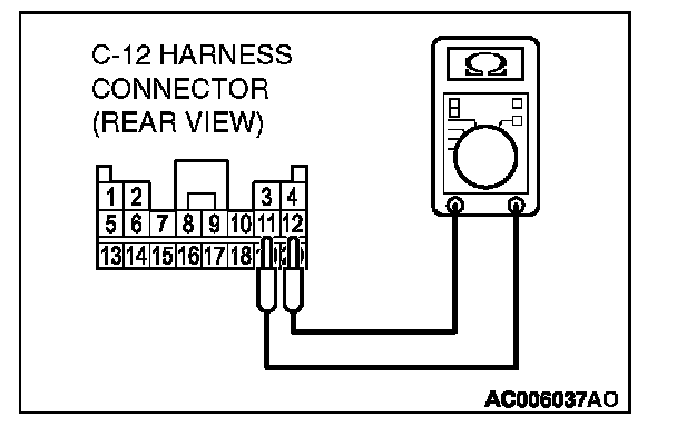 4. Check for continuity between C-12 harness connector terminals 11 and 12. It should be open circuit.