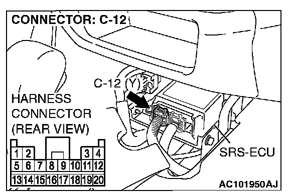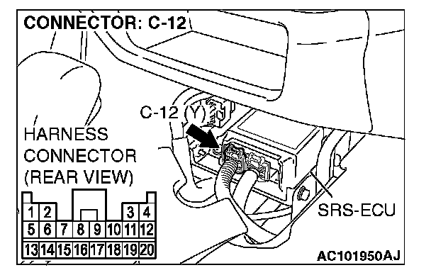 STEP 5. Check the passenger's air bag module circuit at SRS-ECU connector C-12.