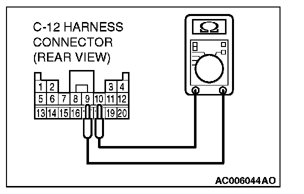 5. Check for continuity between C-12 harness connector terminals 9 and 10. It should be open circuit.