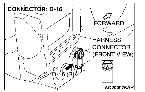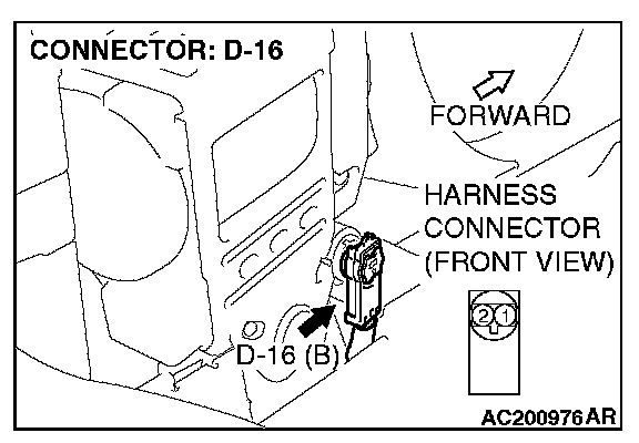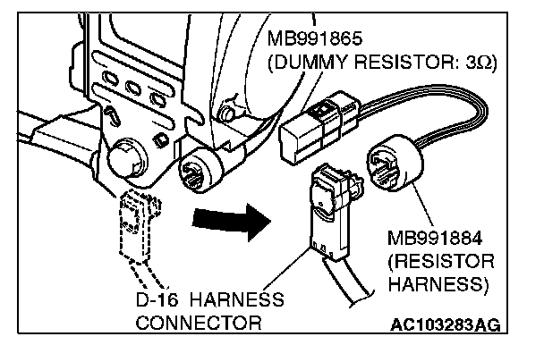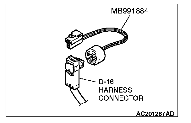 4. Connect special tool MB991884 to the D-16 harness connector.
