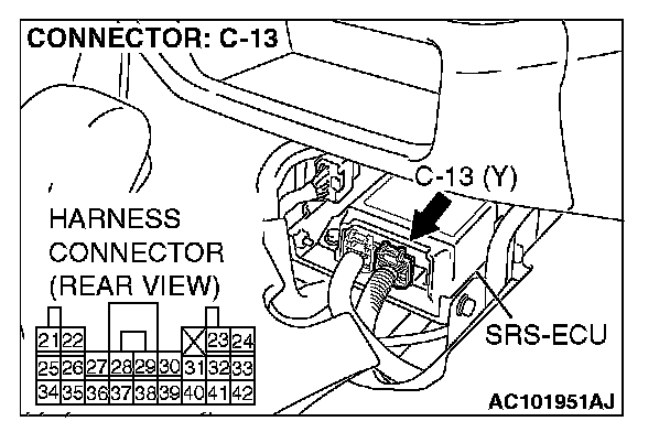 - SRS-ECU connector C-13 (terminal No.29) and the special tool (terminal No.1)