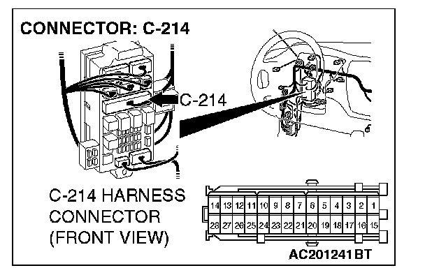 2. Check for continuity between C-214 harness connector terminal 7 and body ground. It should be open circuit.