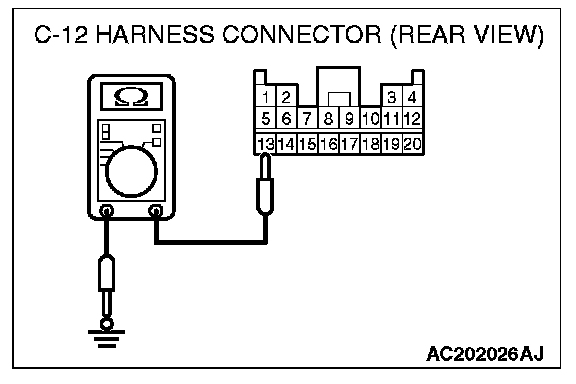 2. Check for continuity between C-12 harness connector terminal 13 and body ground. It should be open circuit.