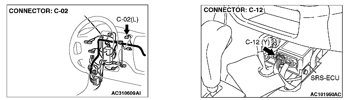 NO: Repair the harness wire between SRS-ECU connector C-12 and combination meter connector C-02. Then go to Step 4.
