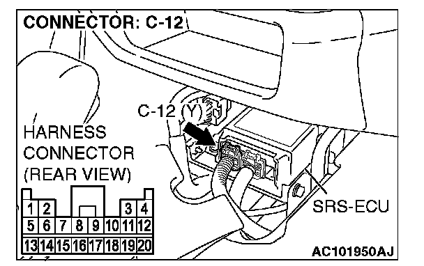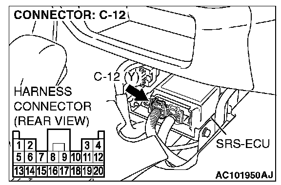 NO: Repair or replace the SRS-ECU connector C-12. Then go to Step 4.