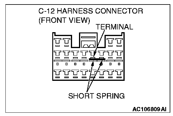 2. Check the short bar for warning light inside the harness connector for improper contact or deformation.