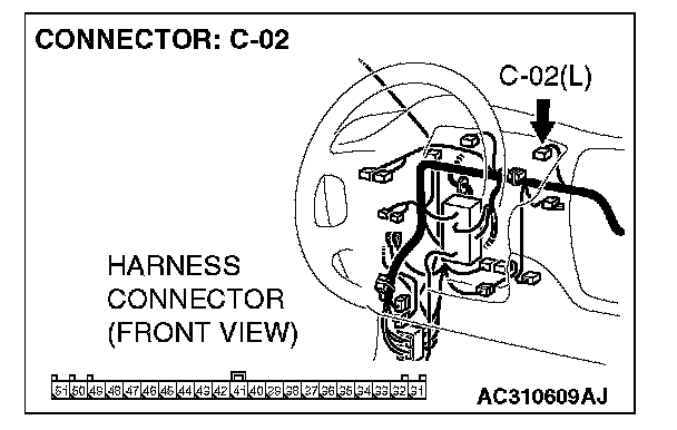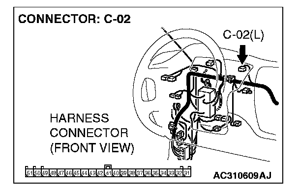 STEP 3. Check the harness for short circuit to ground between SRS-ECU connector C-12 (terminal No.8) and combination meter connector C-02 (terminal No.36).