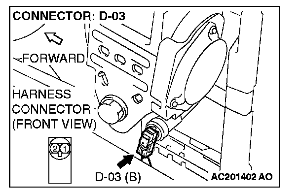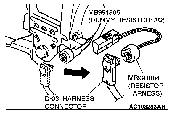 4. Connect special tool MB991884 to the D-03 harness connector.