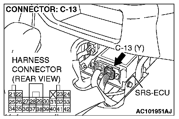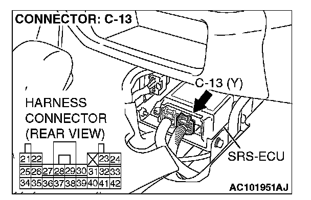 1. Disconnect SRS-ECU connector C-13.