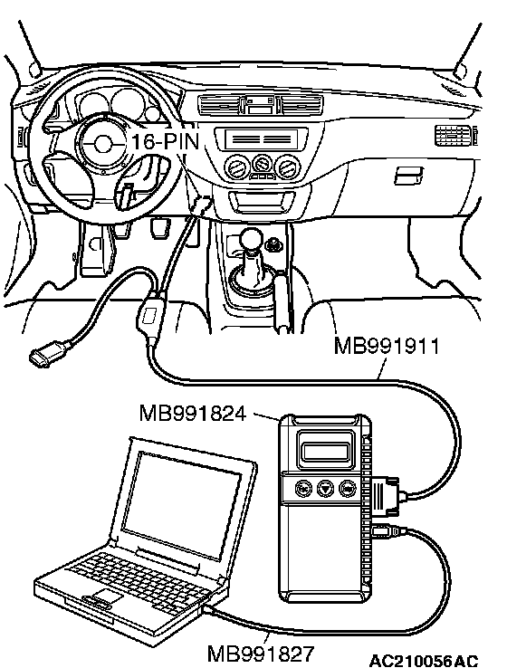 CAUTION: To prevent damage to scan tool MB991958, always turn the ignition switch to the LOCK (OFF) position before connecting or disconnecting scan tool MB991958.