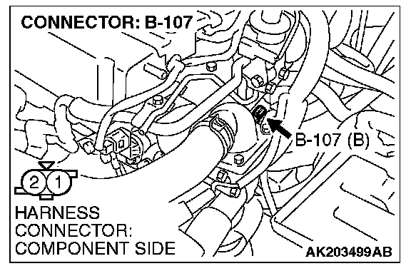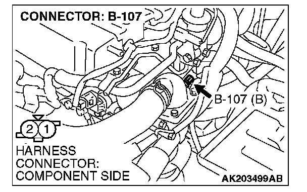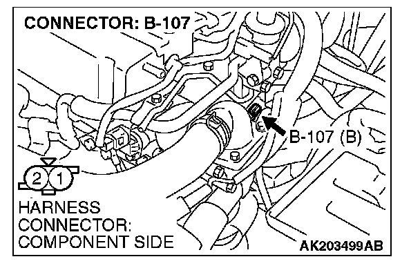 STEP 2. Check harness connector B-107 at the engine coolant temperature sensor for damage.