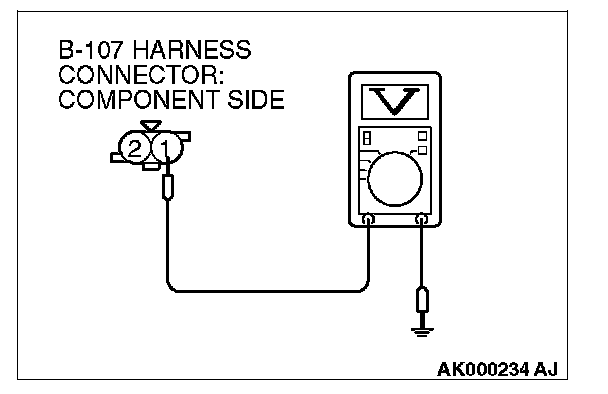 STEP 3. Measure the sensor supply voltage at engine coolant temperature sensor harness side connector B-107.